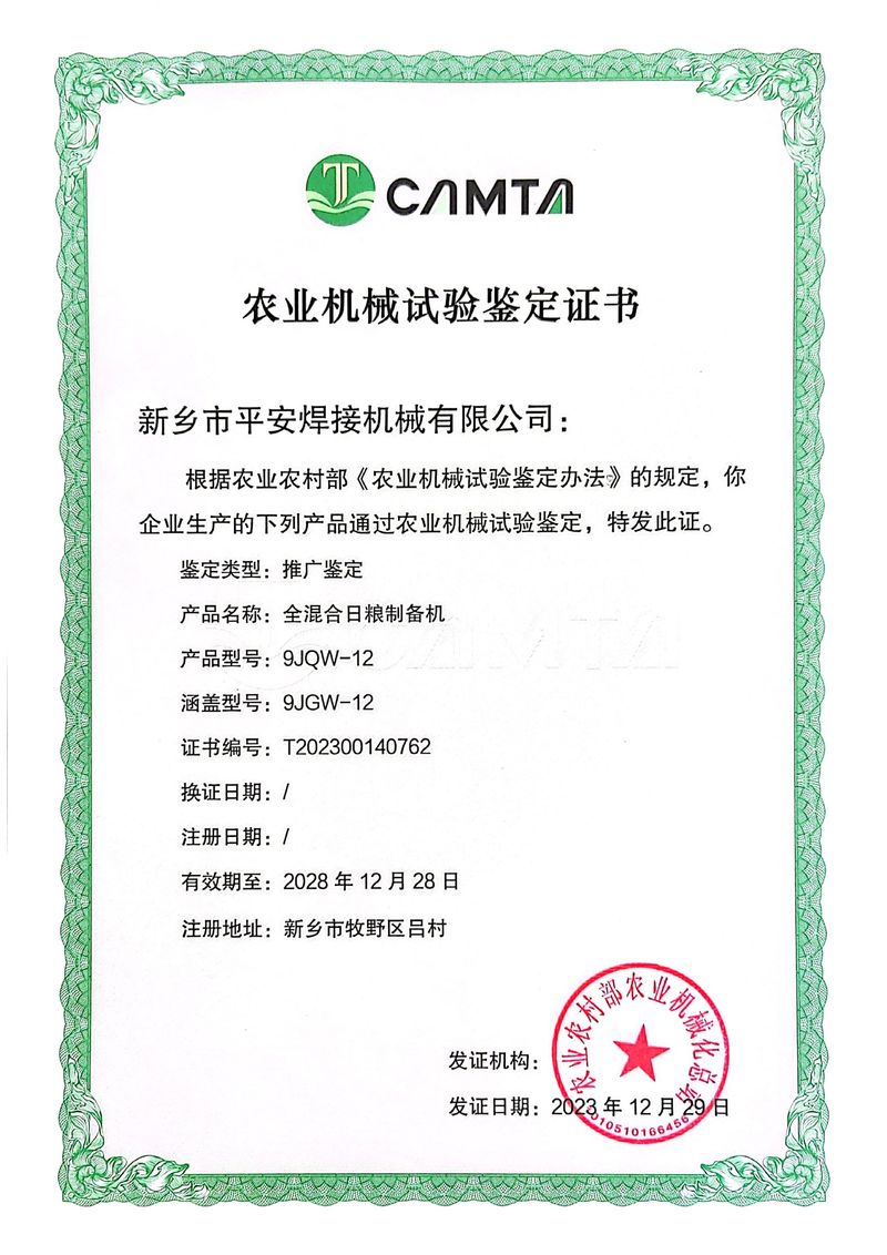 東風送暖,經(jīng)過多個牧場的測量、測試和取樣檢驗,我公司生產(chǎn)的全混合日糧制備機12立方牽引(固定)式TMR攪拌車、16立方牽引(固定)式TMR攪拌車、和21立方固定(牽引)式TMR攪拌車 同時通過國家農(nóng)業(yè)農(nóng)村部農(nóng)業(yè)機械化總站的嚴格審核,公告結(jié)果公布于“2023年第六批國家支持的農(nóng)機推廣鑒定結(jié)果”